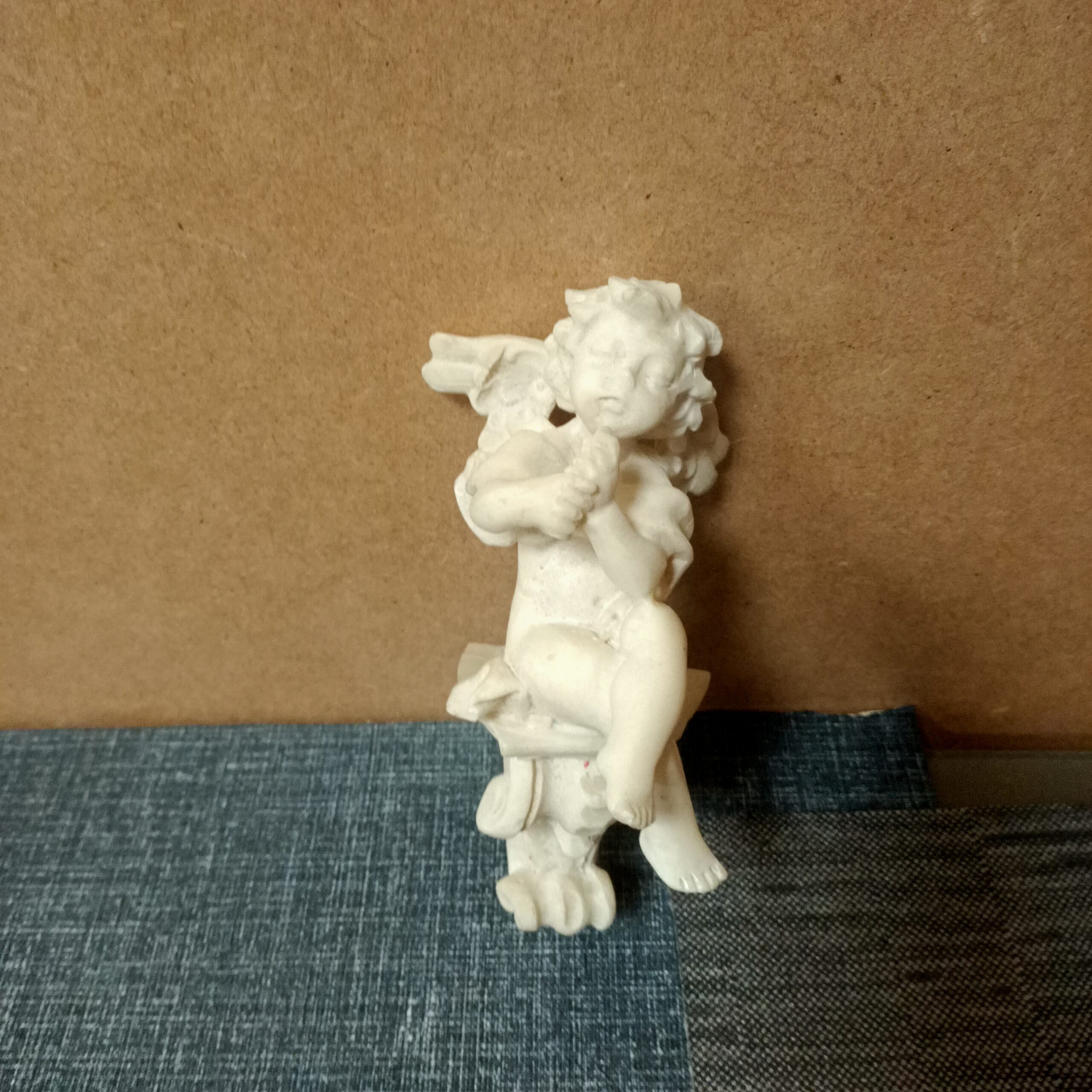 angelito marmolina 20cm sentado en peana tocando flauta
